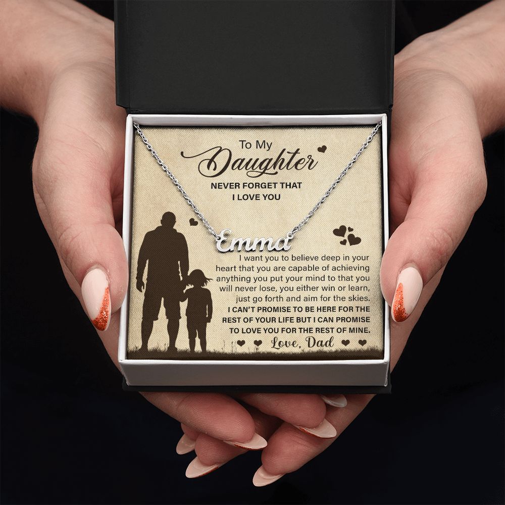 Daughter Deep In Your Heart, Personalized Name Necklace, Gift For Daughter From Dad, Custom Name Jewelry