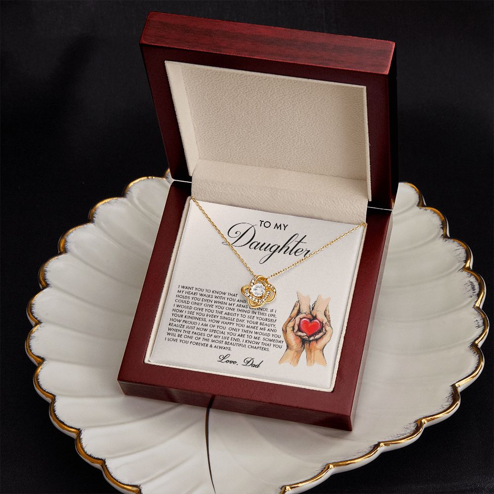 Daughter My Heart Walks With You, Love Knot Necklace, Perfect Gift For Daughter From Dad