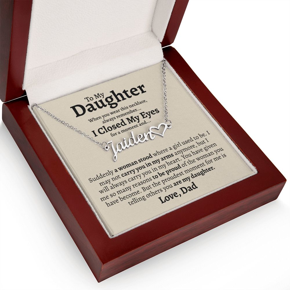 To My Daughter | I Closed My Eyes | Personalized Heart Name Necklace | Gift Idea For Daughter From Dad